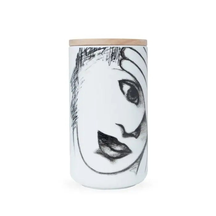 A generously 19cm sized porcelain Canister with an airtight rubberwood lid from the Sketchbook range.