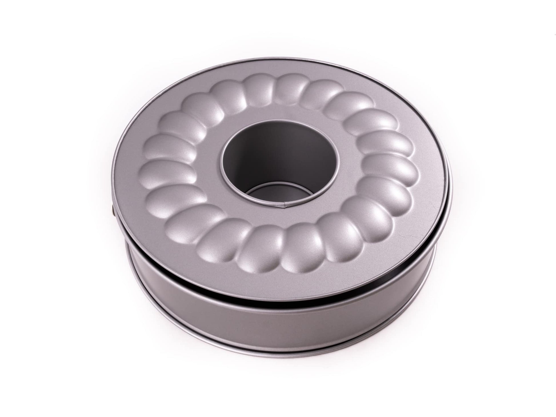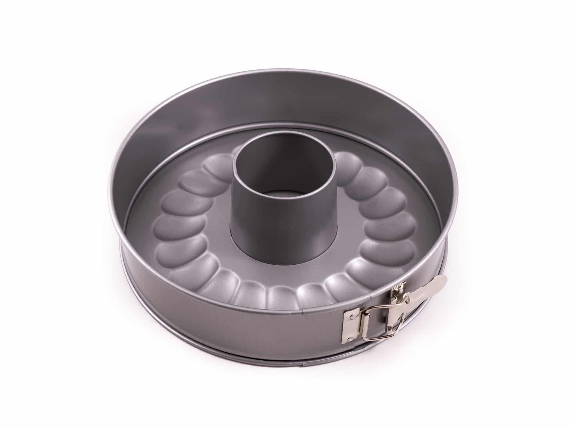 This Springform Tin forms part of the Patisse Silver-Top Range. It is made out of steel with a non-stick coating and can withstand temperatures of up to 230°C. This versatile springform pan comes with two bases, including a flat one and a patterned ring style one. Perfect for making delicate chiffon cakes.