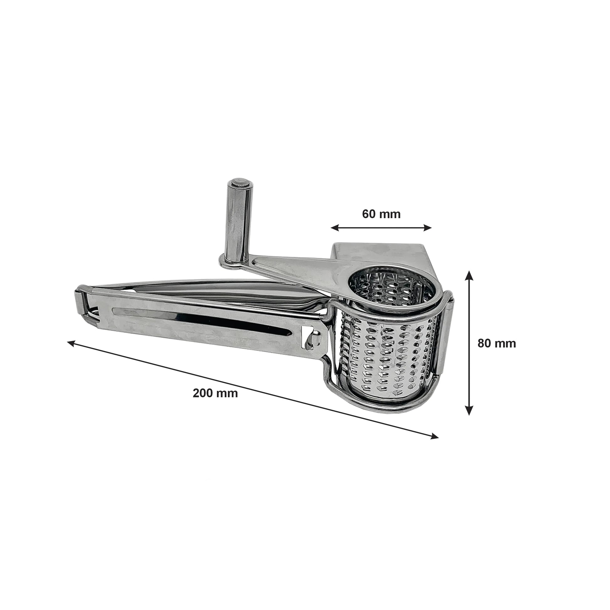 This durable rotary grater allows you to grate cheeses, vegetables, chocolate, nut meg and more quickly and safely.
