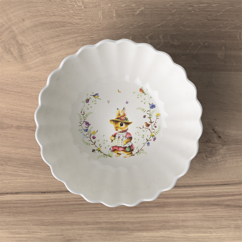 The decorative bowls with bunny patterns are ideal to hold little festive treats.ย The intrinsic motifs of our Spring Fantasy collection show special Easter bunnies flitting around a nostalgic world full of spring spirit.ย