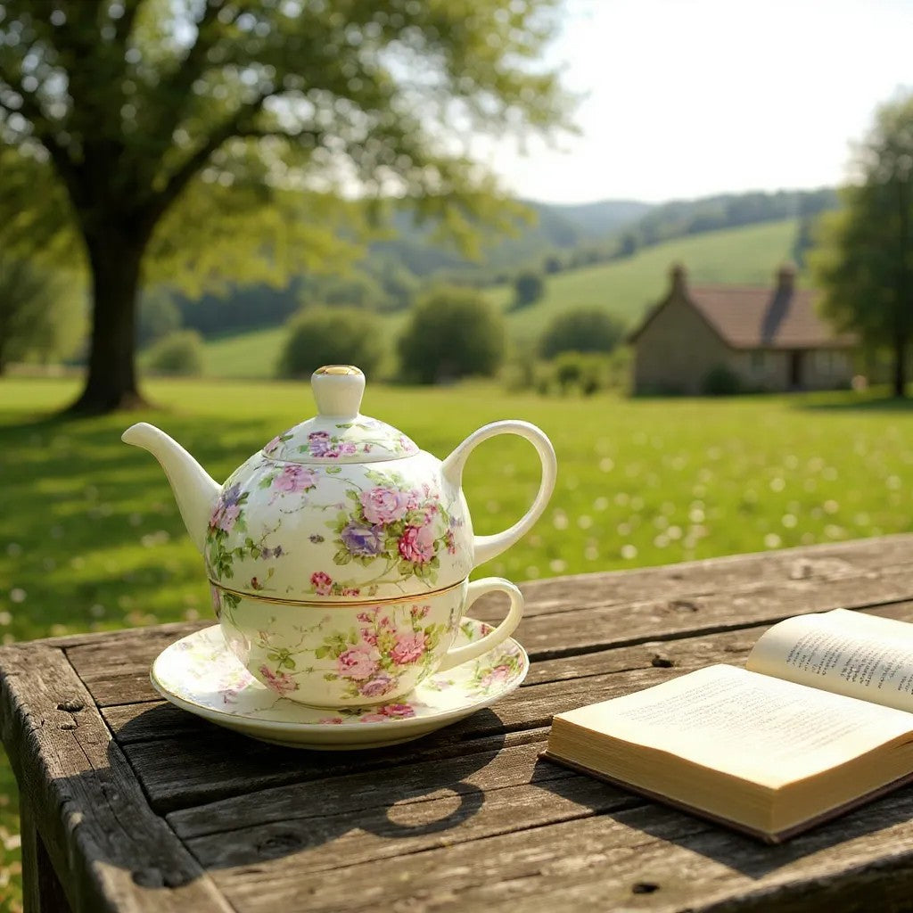 This elegant tea-for-one set features a ceramic teapot adorned with a real gold finish, combining timeless style with refined craftsmanship.