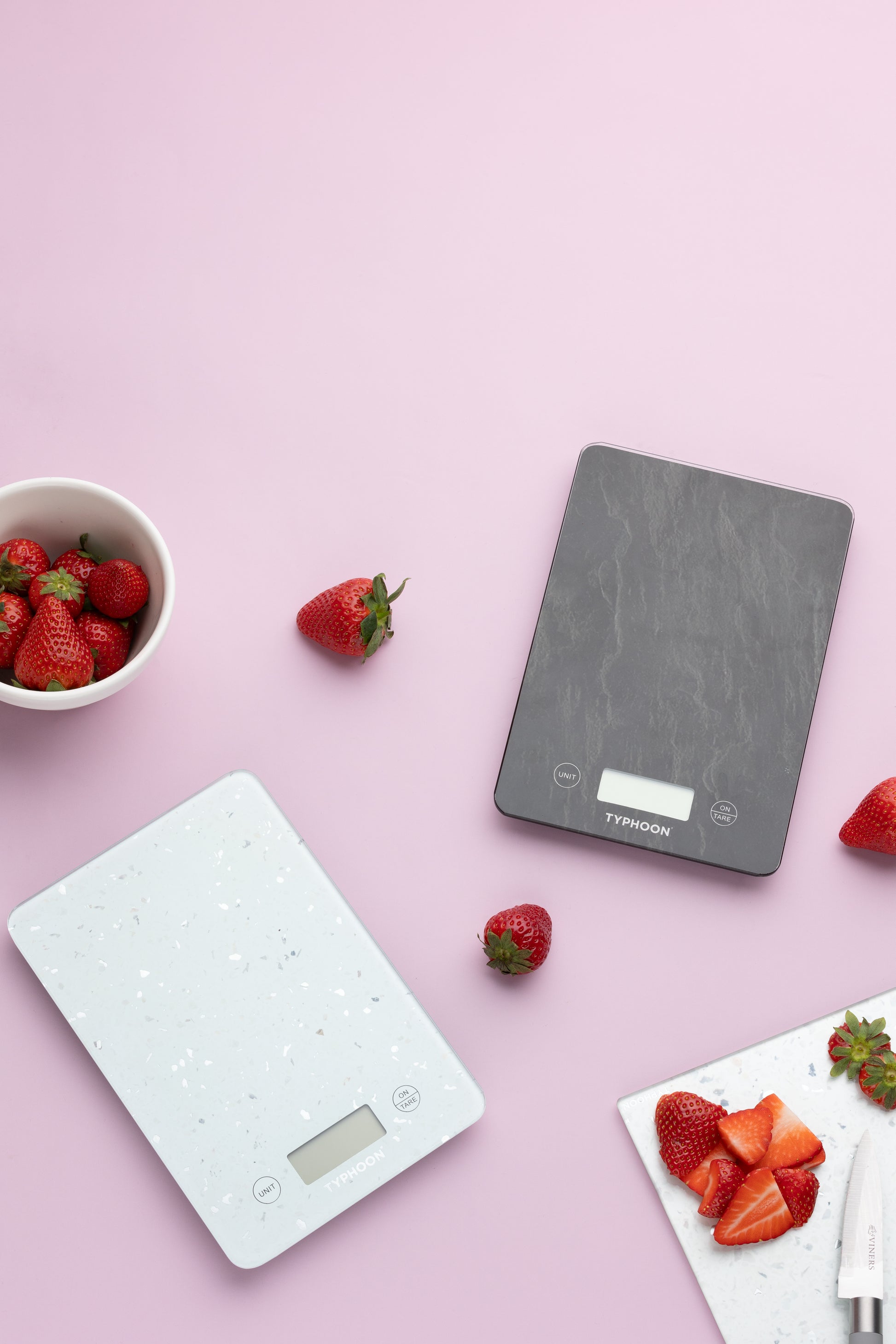 - Elegant Design: The Typhoon Digital Scale features a stunning quartz design that adds a touch of elegance to your kitchen. The sleek, white surface is not only visually appealing but also complements other products in the Typhoon Elements range, such as the Work Surface Protector and Hob Protector.