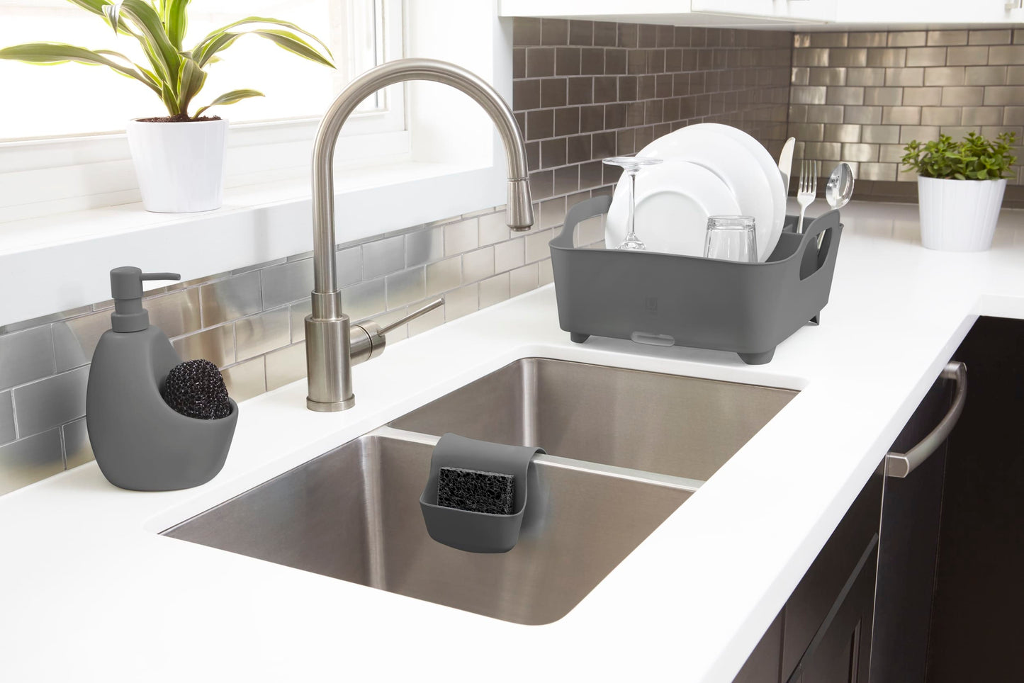 The Joey Soap Dispenser and Scrubby Caddy is a sleek and modern soap dispenser with a built-in caddy.