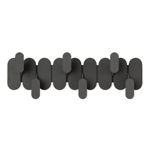 Its six staggered hooks maximize hanging space while creating a striking, graphic look on your wall.