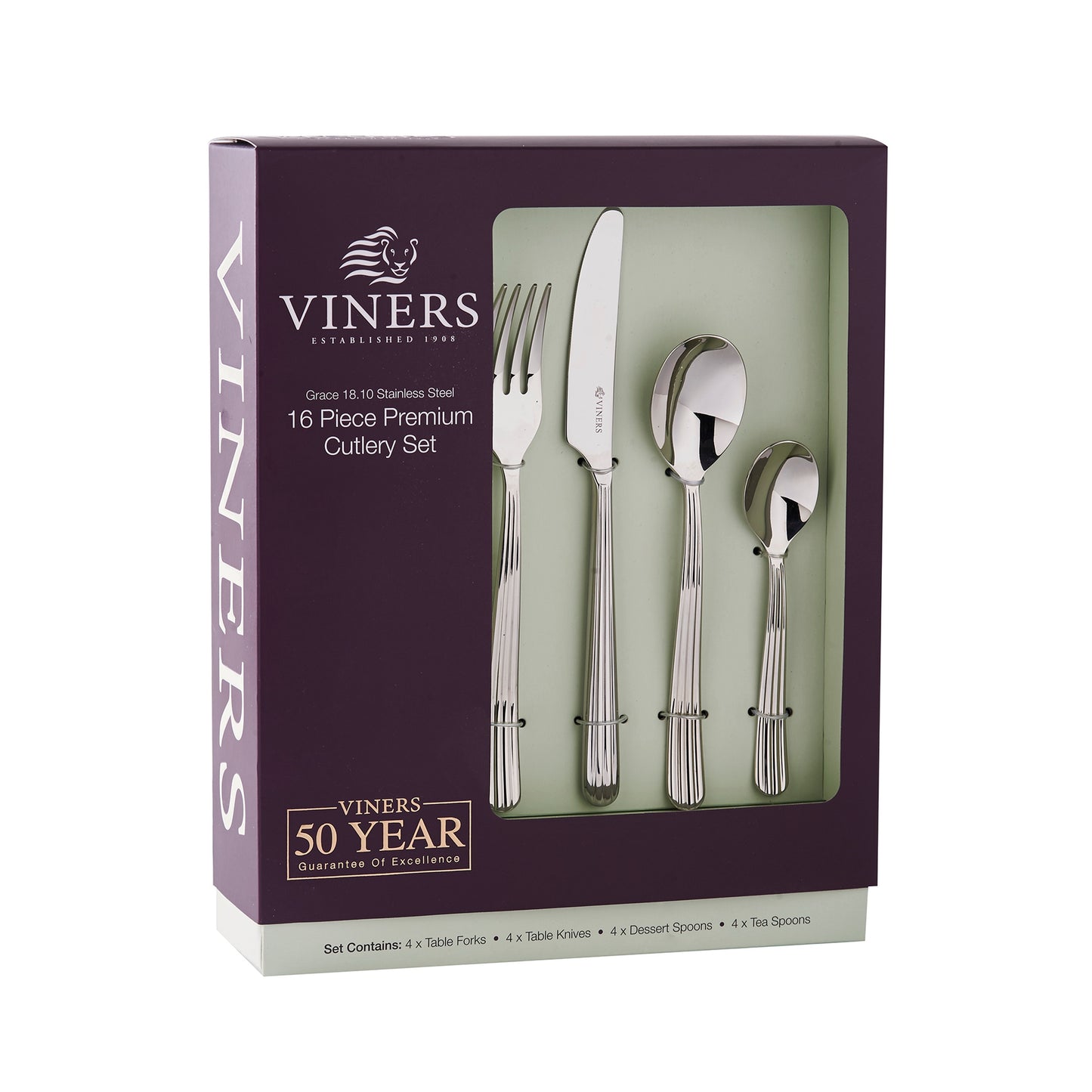 Add that special finishing touch to any table setting with Grace. This versatile set is perfect for everyday and fine dining. The set includes 4 x table knives, 4 x table forks, 4 x tea spoons, and 4 x dessert spoons packaged in a beautiful gift box.